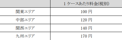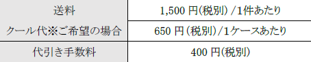 リーファー便をご利用の場合、1 ケースあたり以下の通り送料を頂戴いたします。